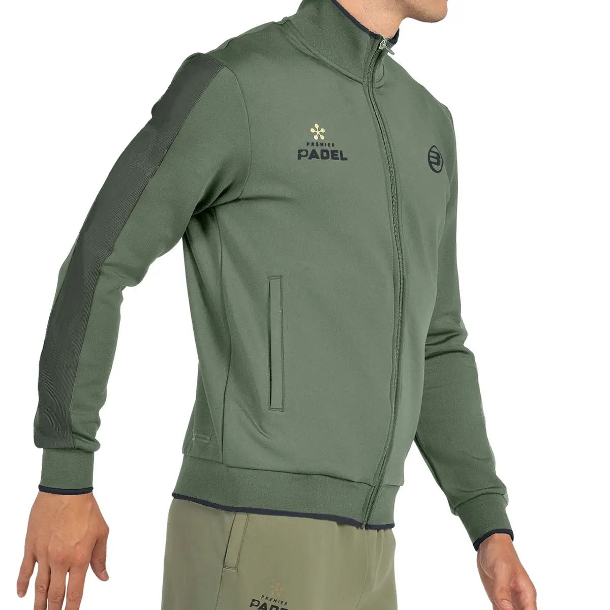 Finisajele rib bicolore de la guler, manșete și tiv oferă o fixare stabilă și un detaliu estetic distinctiv. În plus, dispune de buzunare frontale cu fermoar, ideale pentru depozitarea în siguranță a obiectelor personale. Benzile grafice personalizate de pe mâneci accentuează caracterul sportiv, iar emblemele oficiale Premier Padel oferă un finisaj premium.