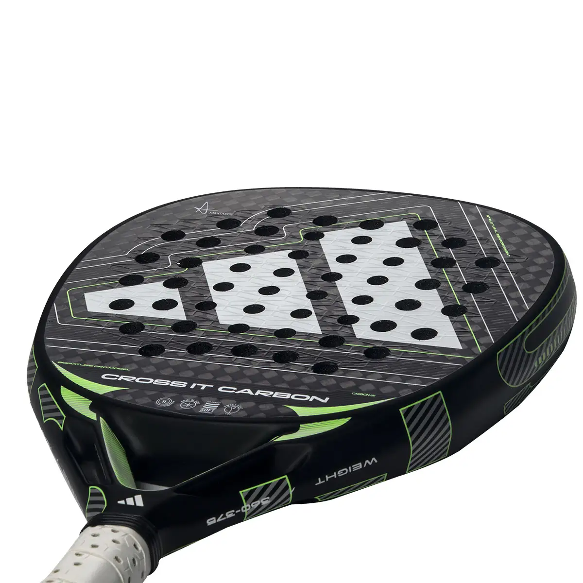 Cross It Carbon 2026 combină materiale de top cu cele mai avansate tehnologii Adidas. Structura din fibră de carbon și fețele din carbon 6K garantează o rachetă rigidă, durabilă și puternică, oferind o senzație de lovire fermă și precisă.
