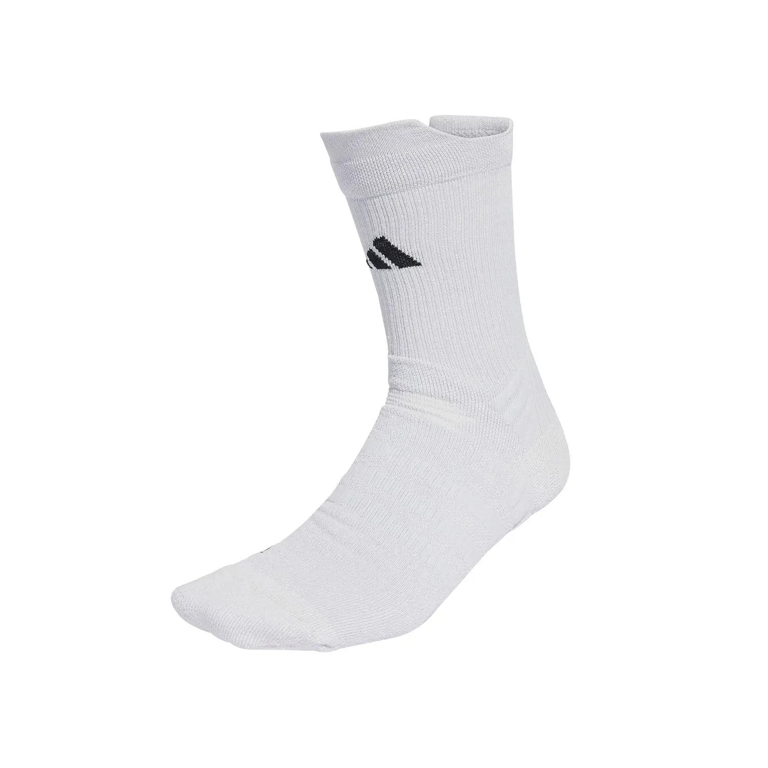 Șosetele Adidas Tennis Crew Dash Grey oferă confort tehnic și o potrivire precisă pentru jucători exigenți. Designul anatomic diferențiază piciorul drept de cel stâng, îmbunătățind stabilitatea. Manșeta superioară ușor căptușită și alungită protejează împotriva frecărilor cu limba și gulerul încălțămintei.