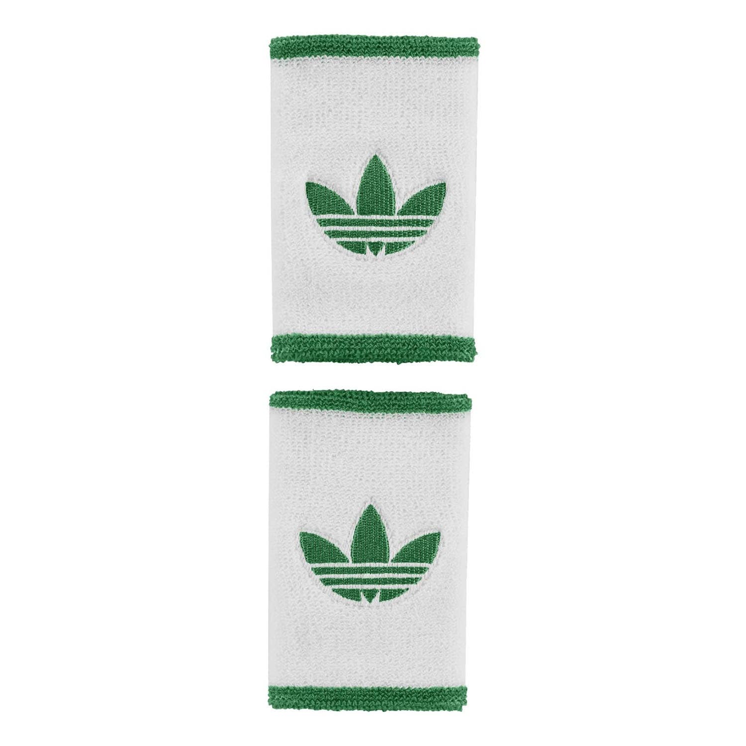 Brățările Adidas Tennis L Originals, albe cu detalii verzi, sunt accesoriul ideal pentru a menține confortul pe teren.